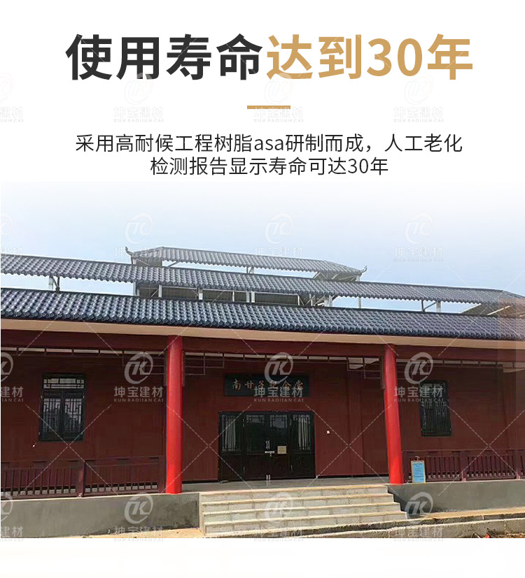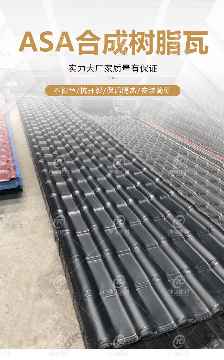合成樹脂瓦正以快速度發展成為現代化屋面瓦產品中很優秀的一個產品,如何把產品更進一步的升級優化,在經過樹脂瓦廠家坤寶匠人的專研和專注實驗后,工字紋理合成樹脂瓦產品以技術和品質為保證誕生了,產品的實際質量和性能得到進一步提升,同時也以優秀的裝飾性能為用戶帶來更高質的使用享受。