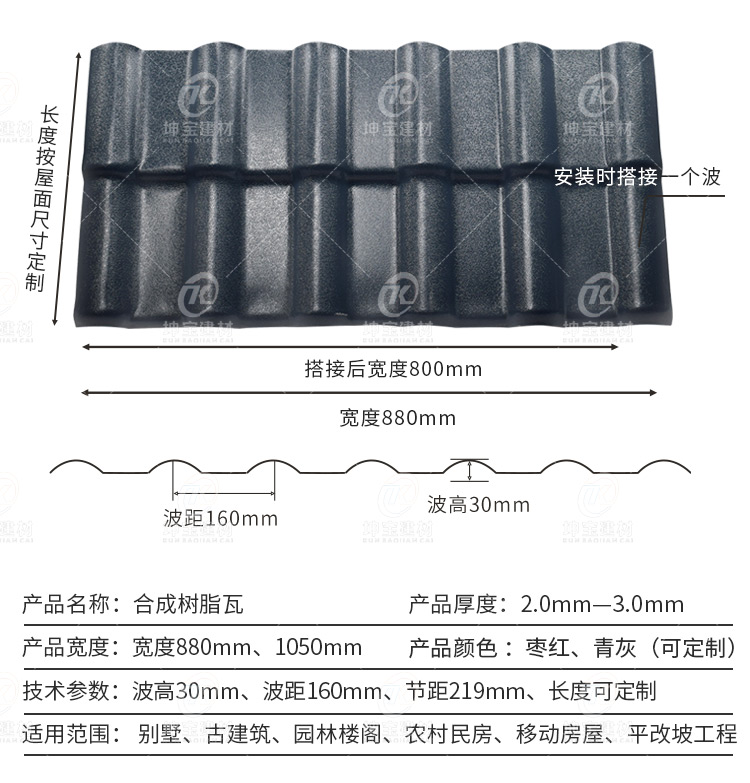 | 顏色:棗紅、青灰、藍色等 | 波高:30mm |
